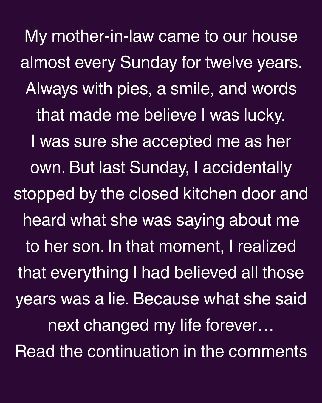For 12 years, my mother-in-law came to us with pies and a smile, but last Sunday I accidentally overheard what she said about me to her son behind closed doors…