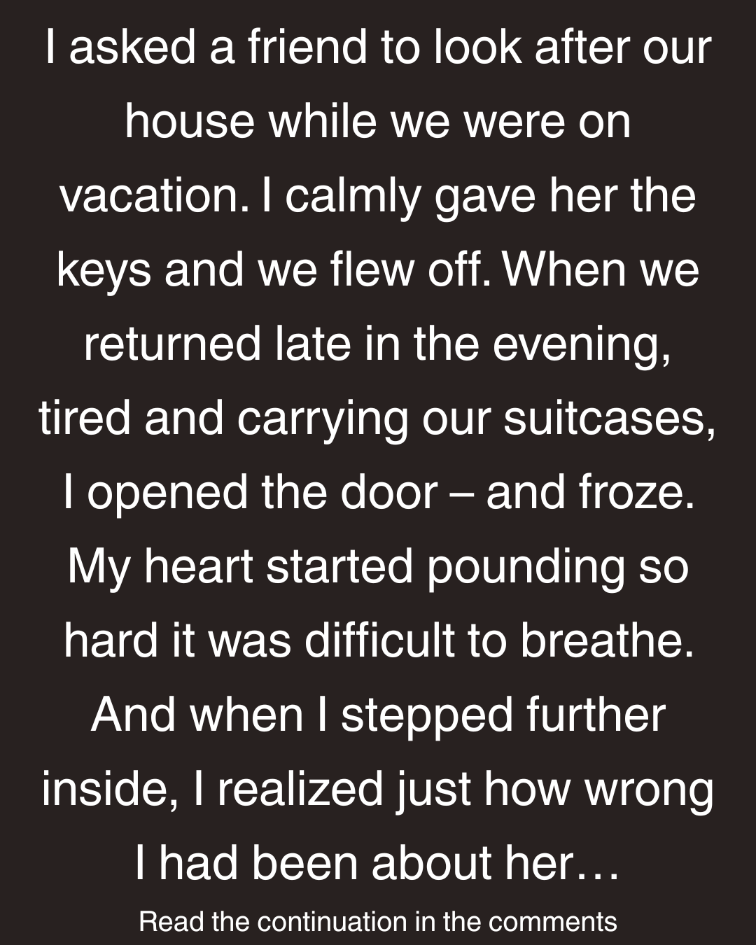 I asked a friend to look after our house while we were on vacation. I calmly gave her the keys and we flew off. When we returned late in the evening, tired and carrying our suitcases, I opened the door – and froze. My heart started pounding so hard it was difficult to breathe. And when I stepped further inside, I realized just how wrong I had been about her…
