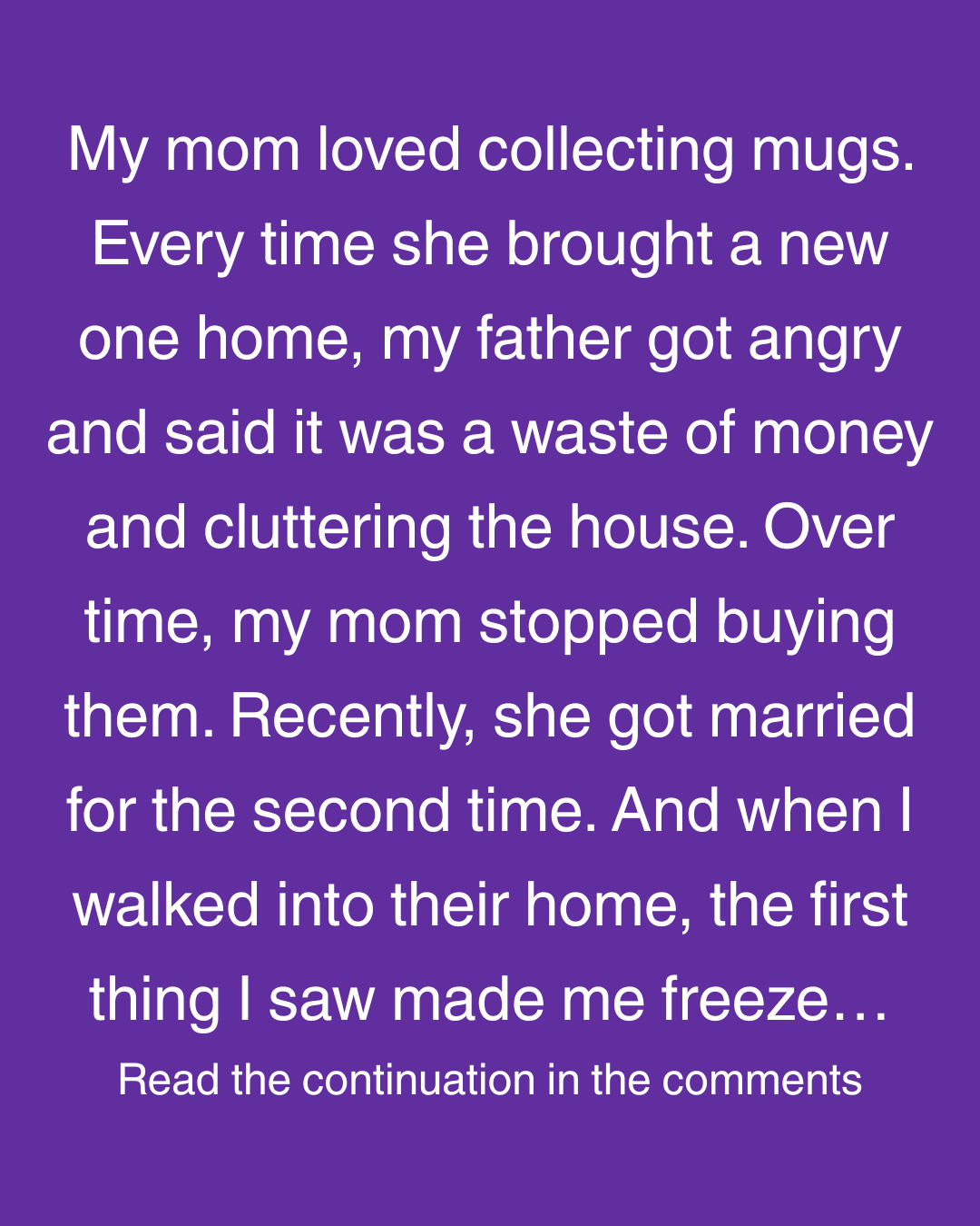My mom loved collecting mugs. Every time she brought a new one home, my father got angry and said it was a waste of money and cluttering the house. Over time, my mom stopped buying them. Recently, she got married for the second time. And when I walked into their home, the first thing I saw made me freeze…